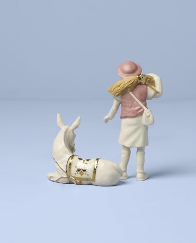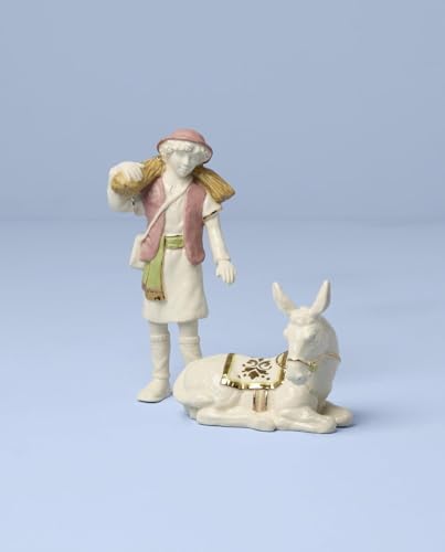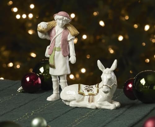 Crafted from high-quality porcelain, this collection stands out for its durability and elegance. The boy figurine measures 2.75 inches in length, 1.5 inches in width, and 6.5 inches in height, while the donkey measures 4.25 inches in length, 2 inches in width, and 3.5 inches in height. Each piece is designed to bring a touch of charm to your holiday décor.